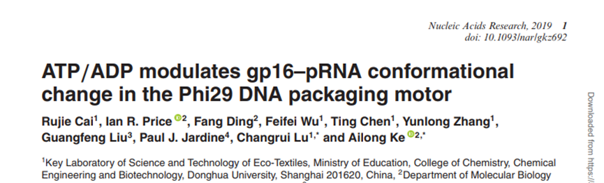 近日,我校化学化工与生物工程学院陆昌瑞教授课题组在核酸领域顶级期刊《核酸研究》(Nucleic Acidsb Research,IF=11.2)发表题为“ATP/ADP modulates gp16–pRNA conformational change in the Phi29 DNA packaging motor”的最新研究成果。该项研究首次获得病毒基因组包装马达末端的结构信息,捕获到其结合ATP/ADP所发生的构象变化,为临床治疗和药物设计提供可靠的理论基础,进而为病毒感染的诊断和治疗提供新思路、新靶点。我校博士生蔡汝洁为第一作者,陆昌瑞教授和康奈尔大学Ailong Ke教授并列通讯作者。yl23411集团化学化工与生物工程学院为第一单位。
