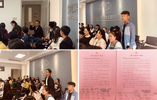 最后,学生党支部书记潘攀宣读“光盘行动”倡议书,号召全体党员共同为建设文明、和谐、环保的社会环境作出自己的贡献。两个支部的全体党员纷纷响应号召,并在倡议书上签名。支部党员表示,“常将有日思无日,莫待无时当有时”,虽然现在生活富足了,但作为当代青年,仍要争做勤俭节约的传播者、实践者和示范者,树立崇尚节约的价值理念,在强化敬畏感中“立心、立规、立行”。
