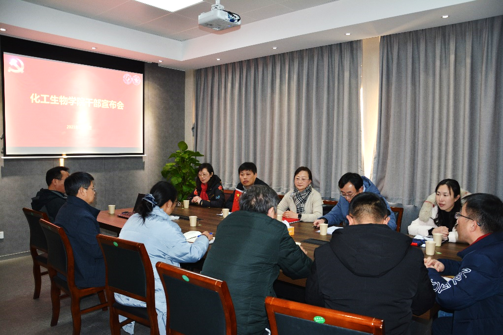 2021年1月11日下午,化工生物学院在三号学院楼4091举行学院领导干部宣布会。校党委组织部副部长张晓冬主持会议,学院党委书记宋丽贞、领导班子成员、各系部支部书记和学生工作办公室全体成员参加会议。